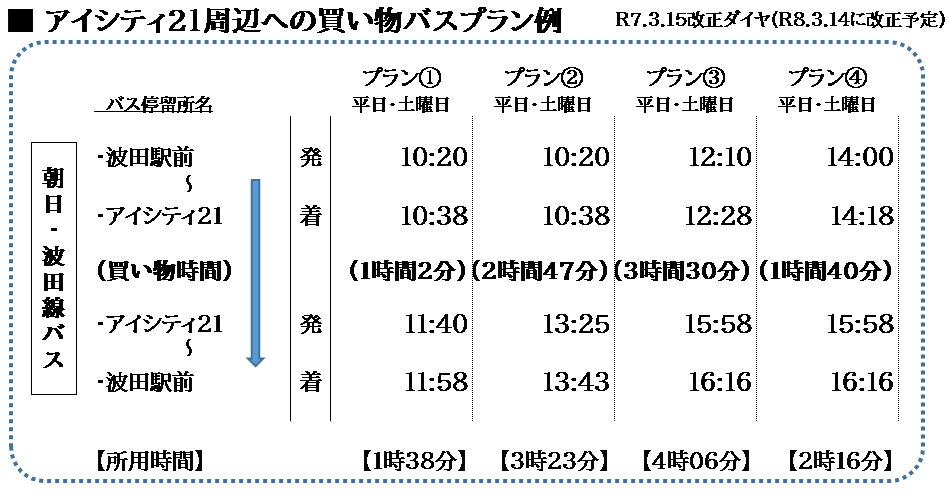 このバスを利用することで、運転免許を返納された方でも、山形村や梓川地区へ買い物などに出掛けることができます。限られた路線本数であるため時間帯に制約がありますが、利用してみてはいかがでしょうか。時刻表や停留所など、詳しくは松本市ホームページをご覧になるか、波田支所ロビーにパンフレットを置いてありますのでお持ちください。